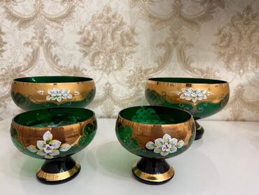 Yaşıl-şüşə qab dəsti – zərgər dəqiqliyində dekorlu