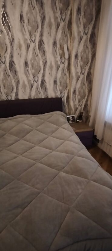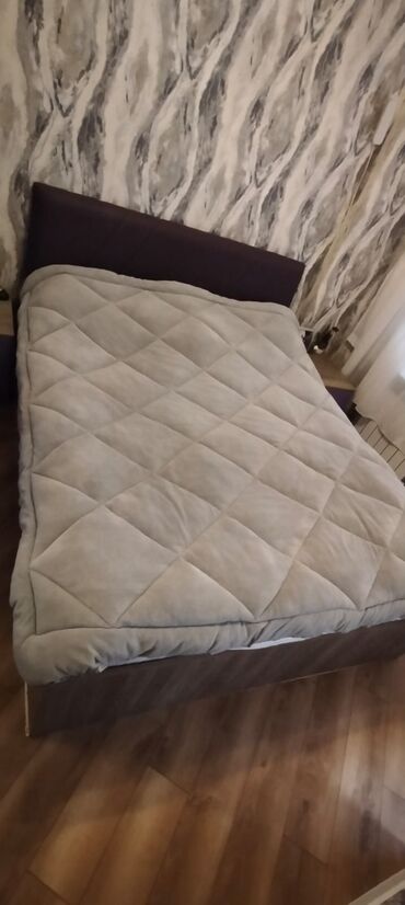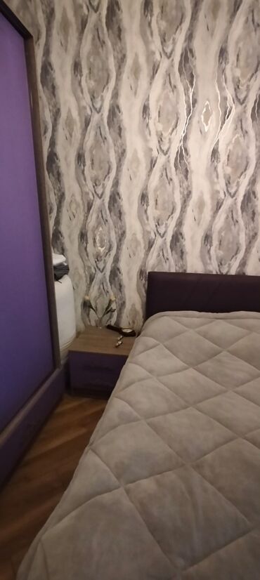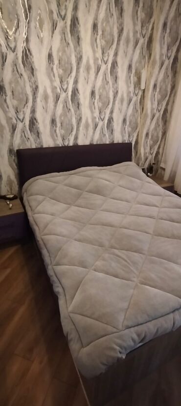 Dəst, şəkillərdə görünən yataq, 2 ədəd yan tumbalar və sürgülü güzgülü şkafdan ibarətdir. Ölçülər üçün fotolara baxın və dəqiq ölçü tələb olunarsa əlavə ölçü götürmək mümkündür. Rənglər realda fotolardakı kimi tünd ağac/bənövşəyi və boz tonlarındadır. Müasir interyerlər üçün uyğundur.