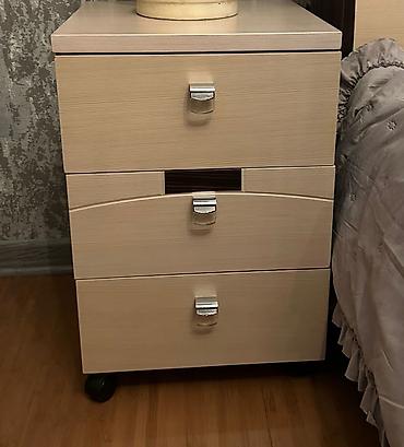- Tumba (yataq yanı dolab): 3 çekmecəli, üstü düz səthli, metal tutacaqlar, alt hissədə təkərli bazaya malikdir.