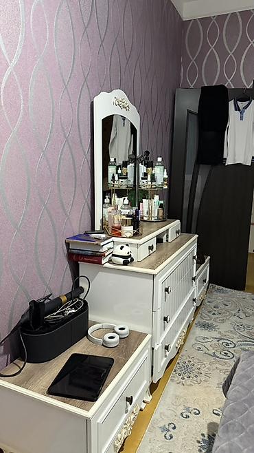 • Tuvalet masası (makiyaj masası) – güzgülü üst hissə, 2 kiçik çekmecə və ikiqat səth, yan tərəfdə əlavə saxlama zonası