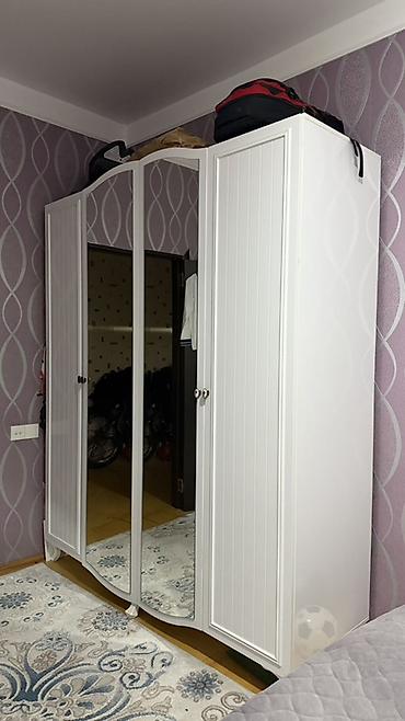 • 4 qapılı qarderob – ortada 2 ədəd hündür güzgü qapı, yanlarda şaquli panelli qapılar, yuxarıda qövsvari karniz forması