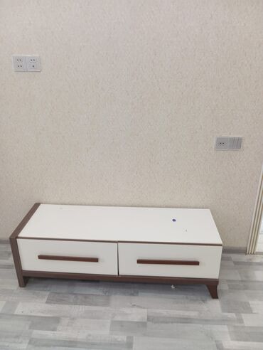 - Tumba/komod – aşağı profilli model, 2 böyük çekmece, ağ ön panellər və taxta rəngində uzun tutacaqlar. TV altlığı kimi də istifadə oluna bilər.