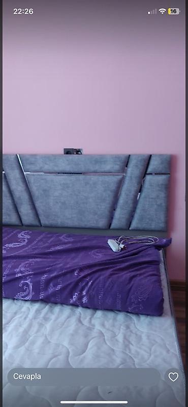 - Yumşaq başlıqlı iki nəfərlik çarpayı: müasir dizaynlı, parça üzlü başlıq, ortopedik tipli şilte ilə birlikdə. Başlıqda dekorativ xəttlər və relyefli panellər var.