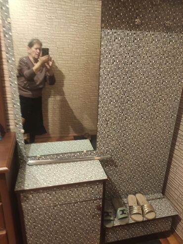 - Şkaf: klassik üslubda, laklı taxta səth. 4 qapılı aşağı bölmə və yuxarıda əlavə iki qapılı bölmə. Geyim və əşyalar üçün geniş saxlamə imkanı.