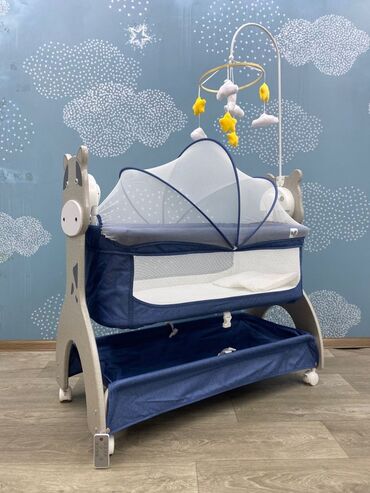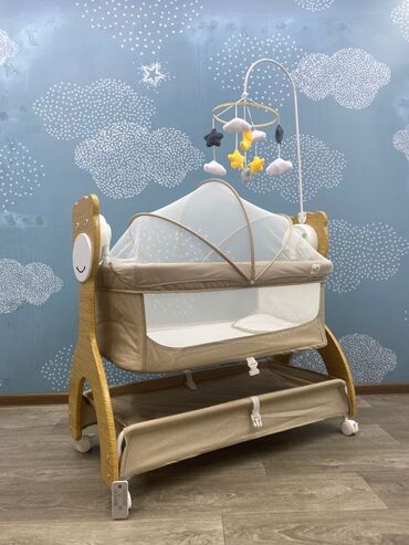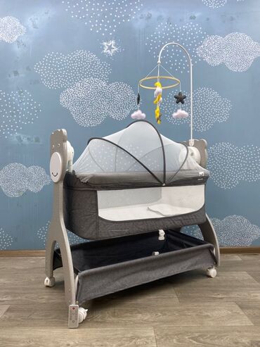 Uşaq beşiyi – yelləncək funksiyalı, moskit torlu, mobil və əlavə səbətlidir.