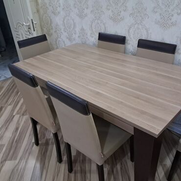 Mətbəx üçün, İşlənmiş, Açılmayan, Dördbucaq masa, 6 stul