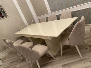 - Komplekt: masa + 8 stul (şəkillərdə göründüyü kimi). Çooox az işlənib.
