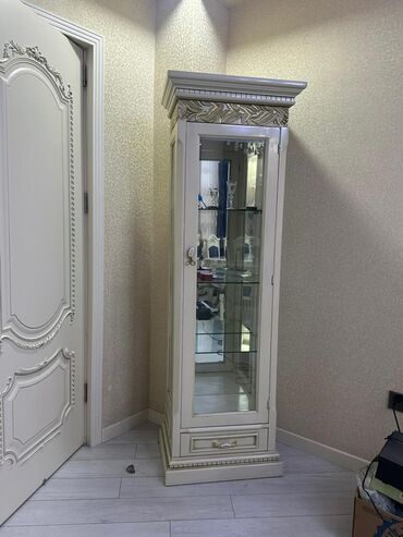 - Vitrin: bir qapılı, 3 şüşə rəf, alt hissədə çekmece; ekspozisiya üçün ideal (qab-qacaq, kolleksiya, dekor)