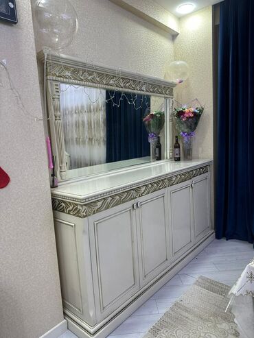 - Geniş bufet-konsol və böyük dekorativ çərçivəli güzgü