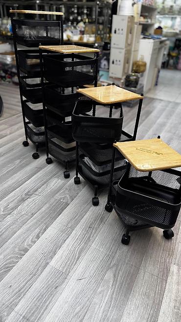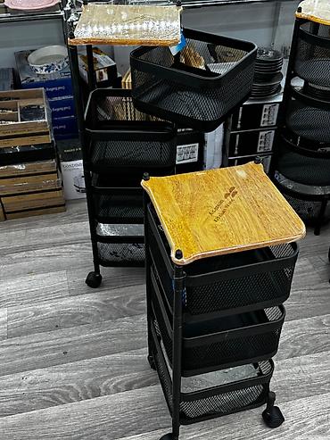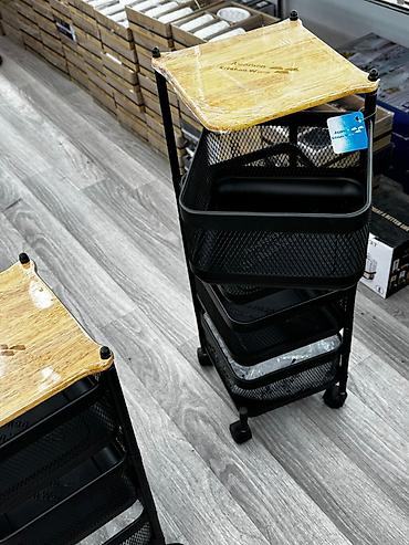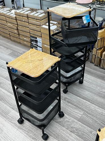 - Material: mat qara rəngdə metal karkas, mesh tipli havalandırılan səbətlər; üst hissə ağac bambuk fakturalı panel.5 merttebeli- hündürlüyü 1-m-5kq tutumlu. 4-mertebeli hündürlüyü 80 sm, 3-mertebeli hündürlüyü 66sm, 2- mertebe hündürlüyü 46 sm,