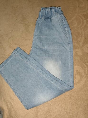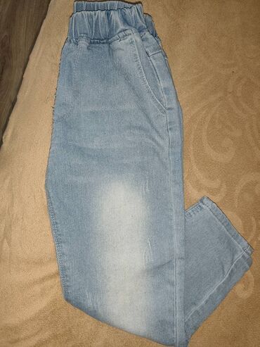 Oğlan üçün qara rəngli baggy jeans şalvar - Model: rahat “baggy” kəsim - Material: denim (uzanan elastik bel) - Rəng: tünd qara, yüngül solğun effekt və dekorativ cırıqlar - Bağlanma: iplə yığma (...