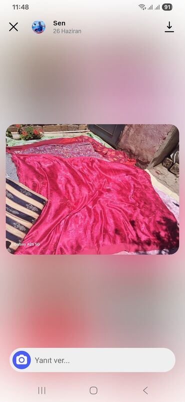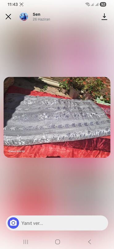 - Material: üzərində naxışlı parça, atlas/ipeksi parıldayan toxuma; içlik hissəsi qalın, isti saxlayan yorgan tipində.