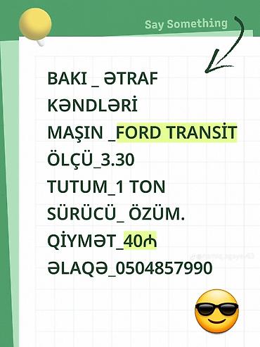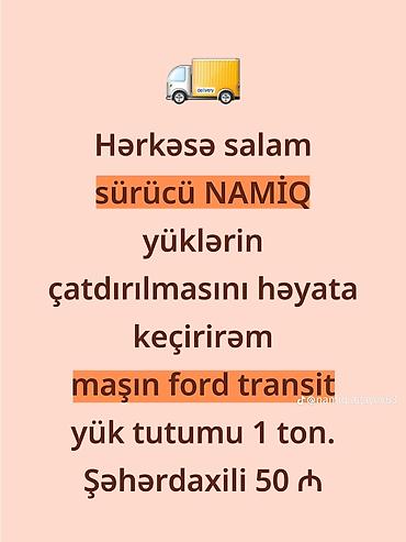《♧》Salam.Adım Namiq .20 illik sürücülük təcrübəm var.Ford transit yük maşınım var.
