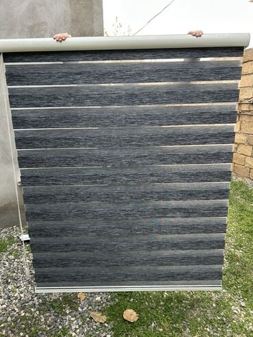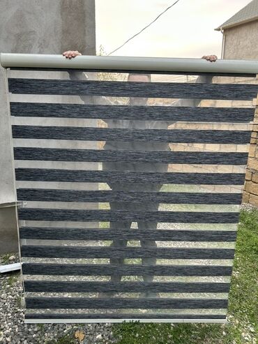 - Zebra pərdə: Geniş enli tünd-boz zolaqlı dizayn, şəffaf və qaranlıq zolaqların növbələnməsi ilə işıq və məxfilik səviyyəsini asan tənzimləmə imkanı. Zəncir mexanizmi ilə yuxarı-aşağı rahat idarə olunur. Üst hissədə ağ kaset tipli rels, alt list ilə səliqəli görünüş. Pəncərə və qapılara uyğun montaj üçün yan bələdçilər və fitinqlər görüntüdə mövcuddur.
