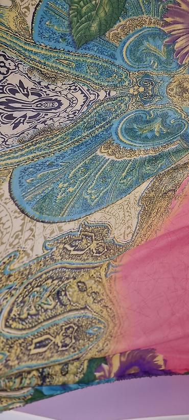 Şəkillərdə real rənglər: çəhrayı, sarı, bənövşəyi, mavi, yaşıl və qızılı tonlar. Parça çox yüngül olduğundan qatlama və düyünləmə üçün uyğundur.