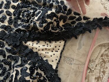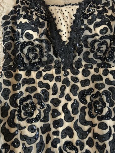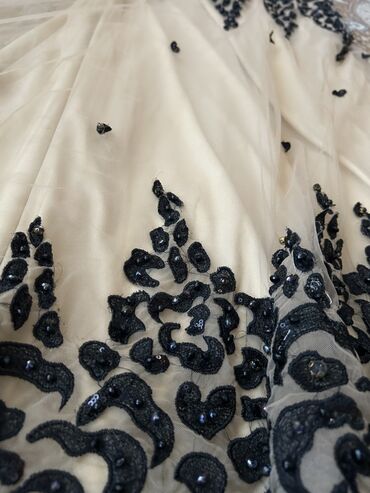 Bej rəngli, qara naxışlı ziyafət donu. Donun üst hissəsi tül materialdan, ətəyi isə axıcı parçadandır. Qara rəngli gül naxışları və muncuqlarla bəzədilib. Xüsusi günləriniz üçün zərif və dəbli seçimdir.350 azn e oglumun toyuna almisam qolarina elaveler etdirmisem. Cox şık zerif paltardi uzeri muncuq qaslarla bezedilib. Bir defe geyilib. Profilimde coxlu ziyafet donu var baxa bilersiz