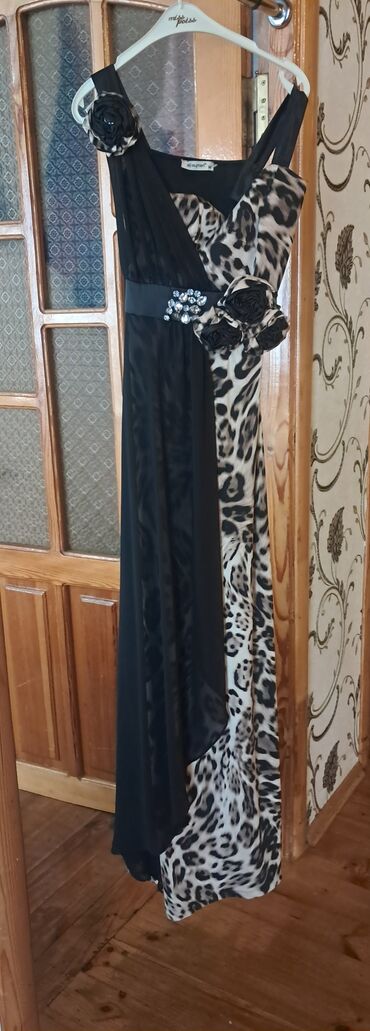 Leopar naxışlı zərif gecə/ziyafət paltarı - Rəng və naxış: Qara fon