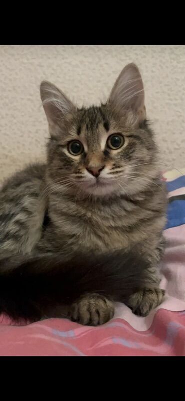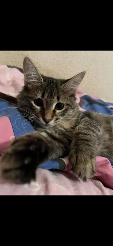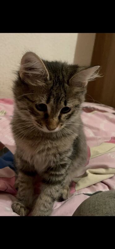 Şirin balaca pişik balası - Növ: ev pişiyi (qısa tüklü) - Rəng: qəhvəyi tabby (zolaqlı) – yanaqlarda və sinədə ağ tonlar - Gözlər: iri, dəyirmi, bozumtul-yaşıl çalar - Qulaqlar: orta ölçülü, uclar...