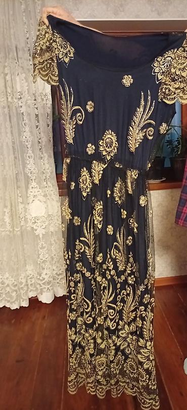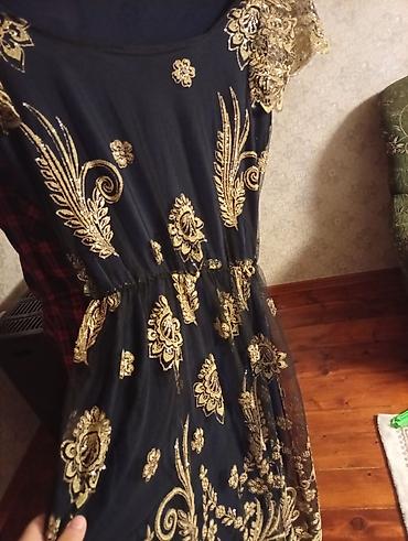 Zərif gecə/libas paltarı - Rəng: qara əsas, üzərində qızılı naxış və
