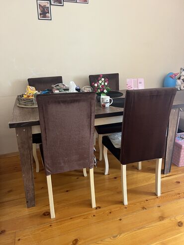 Qonaq otağı üçün, İşlənmiş, Açılmayan, Dördbucaq masa, 4 stul