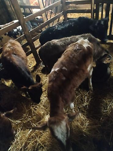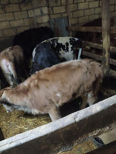 Satışda: bala buzovlar qrupu Məlumat: - Yaş: təxminən 1–3 aylıq - Cinslər: yerli südlük/ətlik tipli qarışıq (ağ-qara, qara və qəhvəyi rənglərdə) - Qulaq birkaları var, identifikasiya olunub - Qru...