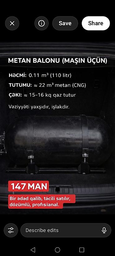 - Universal silindrik LPG/CNG balonu – baqaja quraşdırma üçün uyğundur