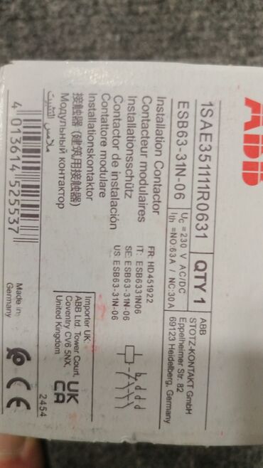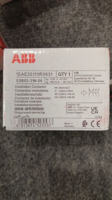 Qutu üzərindəki məlumatlar tam şəkildə mövcuddur; ABB STOTZ-KONTAKT GmbH istehsalı.