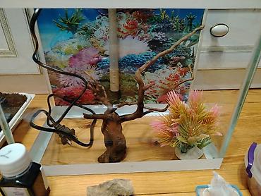 - Şüşə akvaryum, ağ metal/PL çərçivə ilə