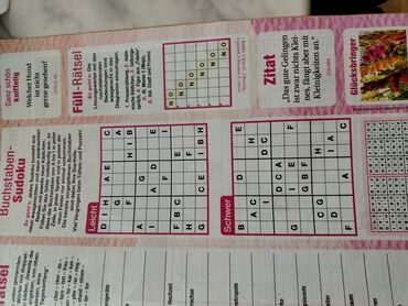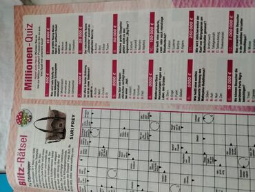 - Şəkillərdə görünən məzmun və başlıqlar Alman dilindədir. Bulmaca və viktorinalar jurnalda çap olunmuş şəkildə təqdim edilir.