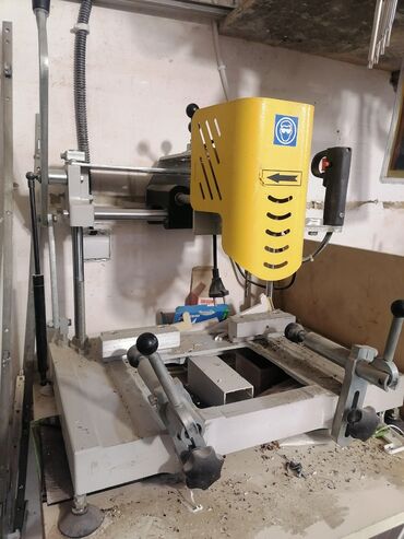 Alüminium və PVC üçün emal avadanlıqları dəsti Təsvir: - Kəsim mişarı: yuxarıdan endirmə tipli, bucaq üzrə kəsmə cədvəli və miqyas göstəricisi ilə. Sürətli bucaq tənzimləmə sektoru, material dayaq...