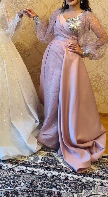 Zərif libas – toz-çəhrayı rəngdə, tam uzunluqda. M razmer 1 dəfə geyilib - Bədəni incə göstərən dar siluet - Parlaq, diqqətçəkən tekstura sayəsində mərasim, nişan, toy və xüsusi tədbirlər üçün ide...