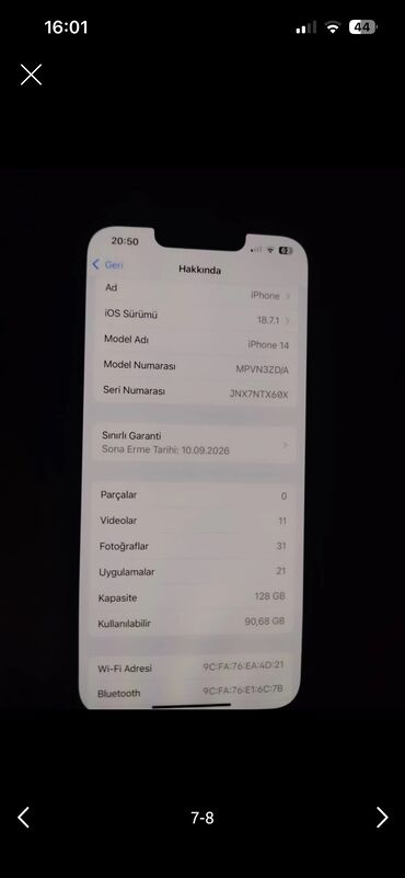 Məhsul: Apple iPhone 14 – 128 GB, ağ rəng Salam telefonu 1 aydırki açmışam qutusundan 0’dan məndədir cızığı bele yoxdur birsözlə təptəzə telefondur qutusu orijinal adaptırı üstünde verilir real al...