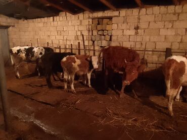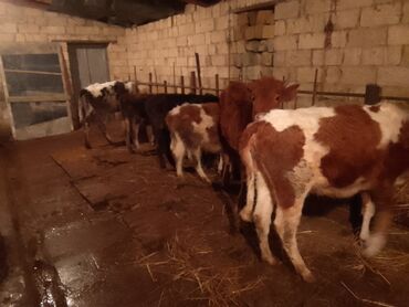 Satışda: bala buzovlar qrupu Məlumat: - Yaş: təxminən 1–3 aylıq - Cinslər: yerli südlük/ətlik tipli qarışıq (ağ-qara, qara və qəhvəyi rənglərdə) - Qulaq birkaları var, identifikasiya olunub - Qru...