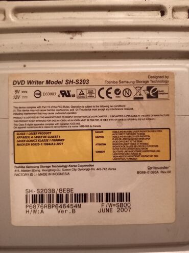- Samsung/Toshiba Samsung SH‑S203B (DVD Writer, Model SH‑S203, istehsal: June 2007)
