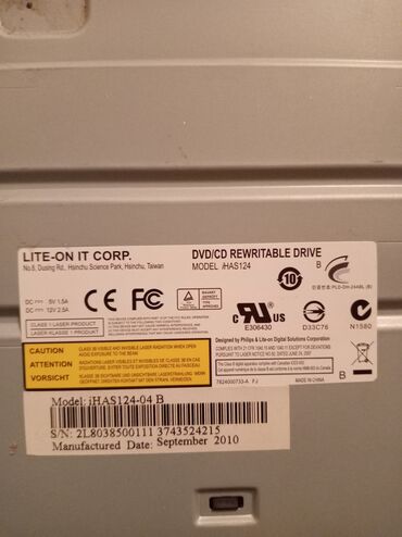 - Lite‑On iHAS124-04 B (DVD/CD Rewritable Drive, istehsal: September 2010)