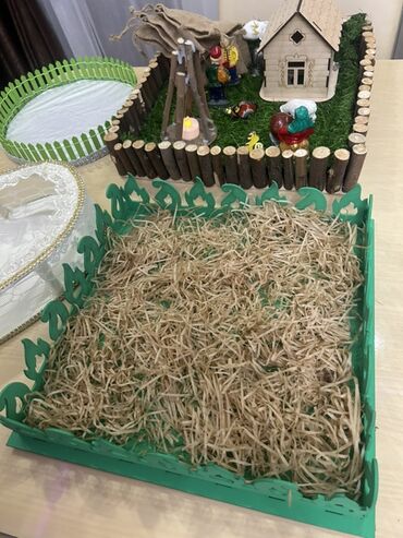 - 1 ədəd yaşıl haşiyəli düzbucaqlı baza (saman dekorlu)