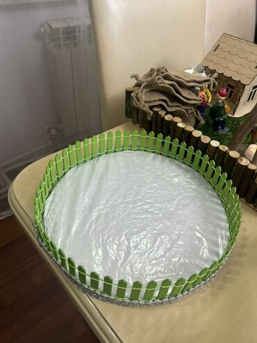 - 1 ədəd dairəvi xonça: yaşıl çəpərli kənar, güzgü effekti verən ağ əsas