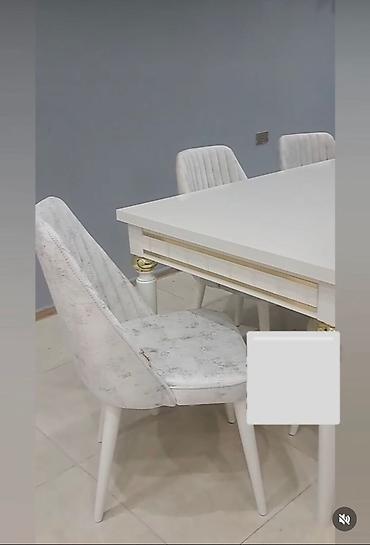 Masa dəsti stol stul dəsti qonaq otaqi mebeli Yemək dəsti – endirim - Dəst: masa + 6 ədəd stul - Masa forması: düzbucaqlı, küncləri yumşaq; həm krem rəngli parlaq üstlü, həm də taxta fakturalı mod...