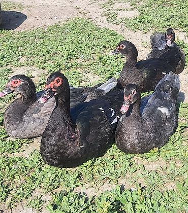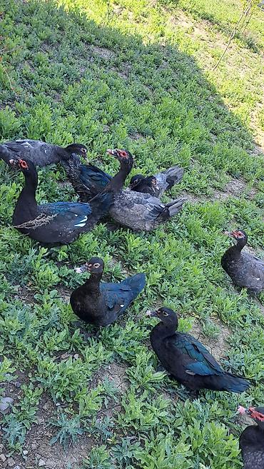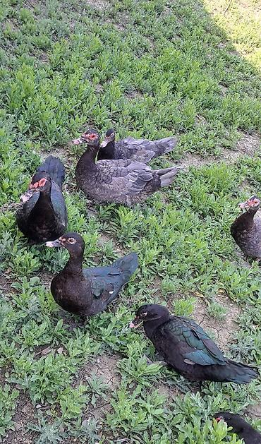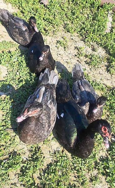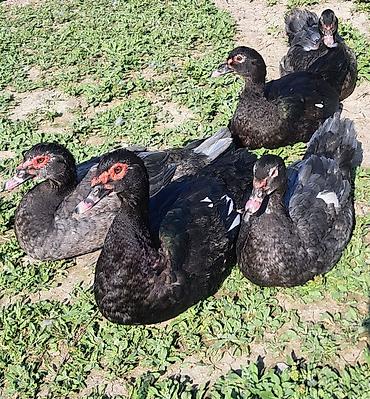 Muscovy ördəkləri (indoutka) (--zümrüdü ördəklər 2 xoruz 3 fərə var --qiymət cütünə aitdi))– qara və tünd-boz rəng çalarlarında, parıltılı yaşıl-mavi qanad lələkləri və ağ ləkələrlə. Şəkillərdə 8-10 başlıq qrup görünür, erkək və dişi fərdlər var.