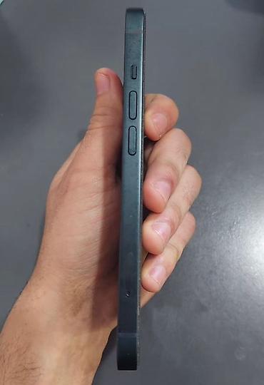 Apple iPhone (12/13 seriyası dizaynı) - Rəng: Qara (Midnight/dark blue ton) - Ekran: 6.1" Super Retina XDR, Face ID çentiği, True Tone - Korpus: Düz kənarlı alüminium çərçivə, şüşə arxa - Prosesso...