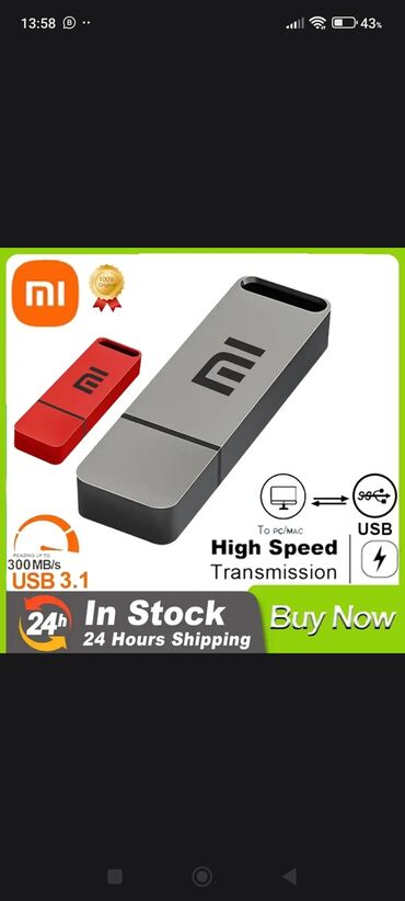 Flash kart Xiaomi, 4 GB, USB 3.1, Yeni