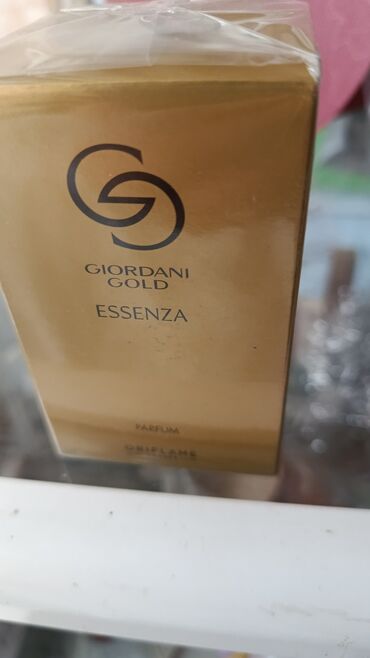 - Flakon: qızılı qapaqlı, tünd şüşə, Giordani Gold loqolu