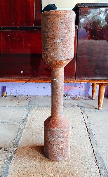 Metall dumbbell. çəki 8.5kq .. ... - Material: Tamamilə metal gövdə və uclar (sferik “top” formalı başlıqlar). - Tutacaq: Möhkəm metal dəstək; sürüşməni azaltmaq üçün lentlə bükülüb - Quruluş: Mono...