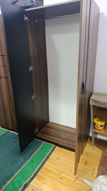 Geyimlərin asılması və səliqəli saxlanması üçün funksional və həcmi böyük həll axtaranlar üçün uyğundur.Mebel: Geniş qarderob dolabı