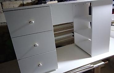- İstifadə: iş masası, makiyaj masası və ya konsol kimi; siyirtmələrdə sənəd/aksesuar, rəflərdə kitablar və elektronik üçün yer