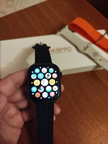 HK9 Pro satılır yeni kimidir. Amoled ekran Android/İos dəstəkləyir telefondan qoşularaq zənglər, mesajlar, multimedia, ürək döyüntüsü, təzyiq, qanda oksigeni ölçmə, addım sayı, idman, qaçış, mikrofon demək olar bütün funksiyalar var. Üzərində əlavə 2 fərqli rəng kəmərlər verilir. Adapteri qutusu sənədləri hamısı var. Whatsapp aktivdir.