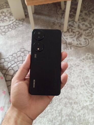 HONOR smartfon - Arxa kamera sistemi: 108 MP əsas kamera (şəkil üzərində qeyd). Böyük kvadrat kamera bloku, iki obyektiv, LED işıq və əlavə sensorla. - Rəng: qara, mat arxa səth. - Korpus: düz kən...
