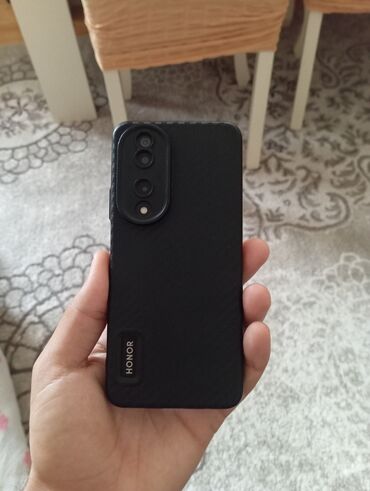 HONOR smartfon - Marka/model: HONOR (arxa qapaqda HONOR loqosu) - Ekran: tam ekran, incə çərçivələr, ön kamera ekran içində gizlədilmiş - Sistem: Android (Google xidmətləri, Play Market mövcud), H...