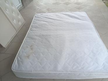 Ağ rəngli iki nəfərlik çarpayı komplekti içinin dəmiri yoxdur matrasi qoymağa qalan hər bir şeyi var