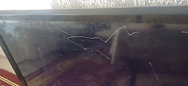 - Ekran: düz panel, LED arxa işıqlandırma. Şəkillərdə göründüyü kimi panel səthində cızıq izləri var, həmçinin “Keçidli girişdən siqnal gəlmir” bildirişi görünür (mənbə qoşulmadıqda çıxan menyu).
